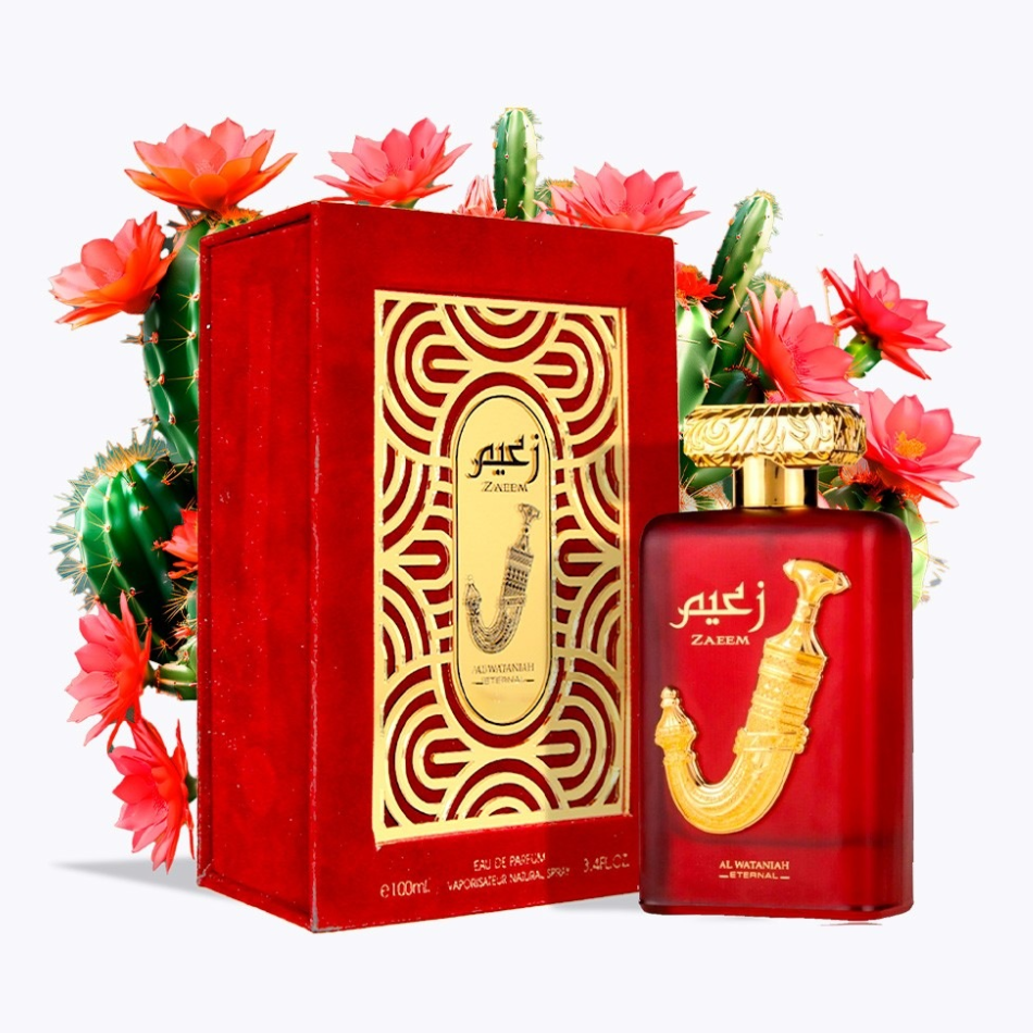 Zaeem, zadivljujući parfem koji odiše samopouzdanjem i privlačnošću. Njegove gornje note cvijeta kaktusa, đurđevka, kasije i ljubičice stvaraju živahnu i osnažujuću mješavinu. Srednje note ljiljana, cvijeta narandže i bugarske ruže daju cvjetni i očaravajući dodir. Na kraju, donje note breze, ruma, pačulija, ambera i burbonske vanilije pružaju topao i senzualan završetak. Zaeem je miris koji privlači pažnju i ostavlja trajni utisak sofisticiranosti.